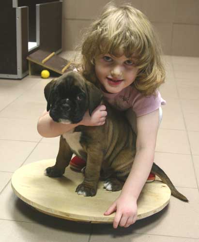Unsere Tochter Mira mit Balou auf dem “Wackelbrett”.